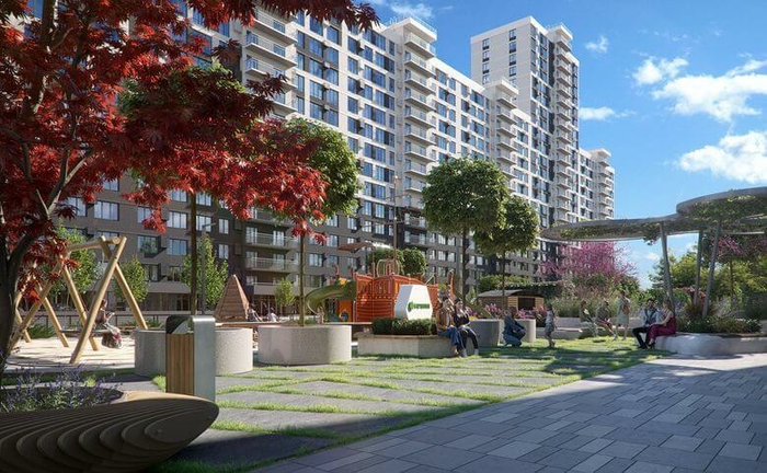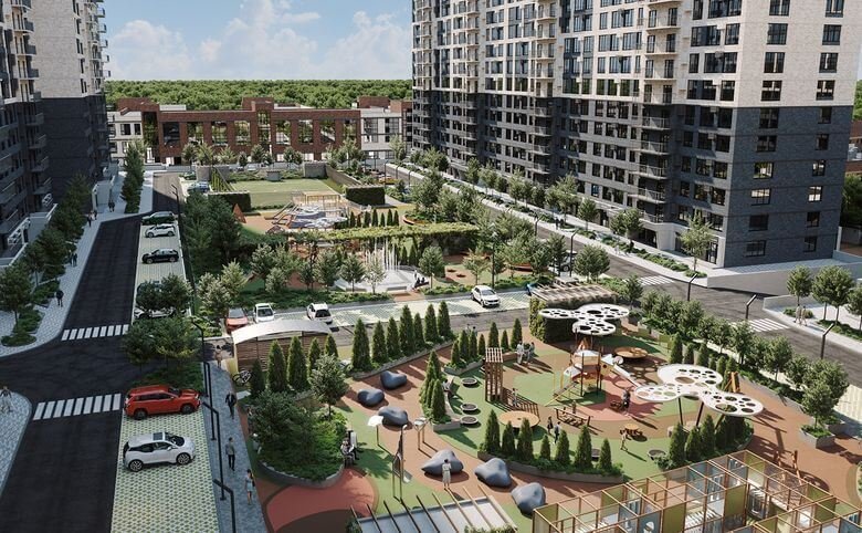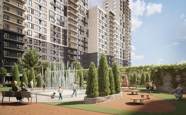 Закрытый двор-сад и всё для управления домом в смартфоне, спортивные площадки и закрытые подземные паркинги с лифтами и кладовыми, безбарьерная среда, плоскостные фонтаны и многое другое.